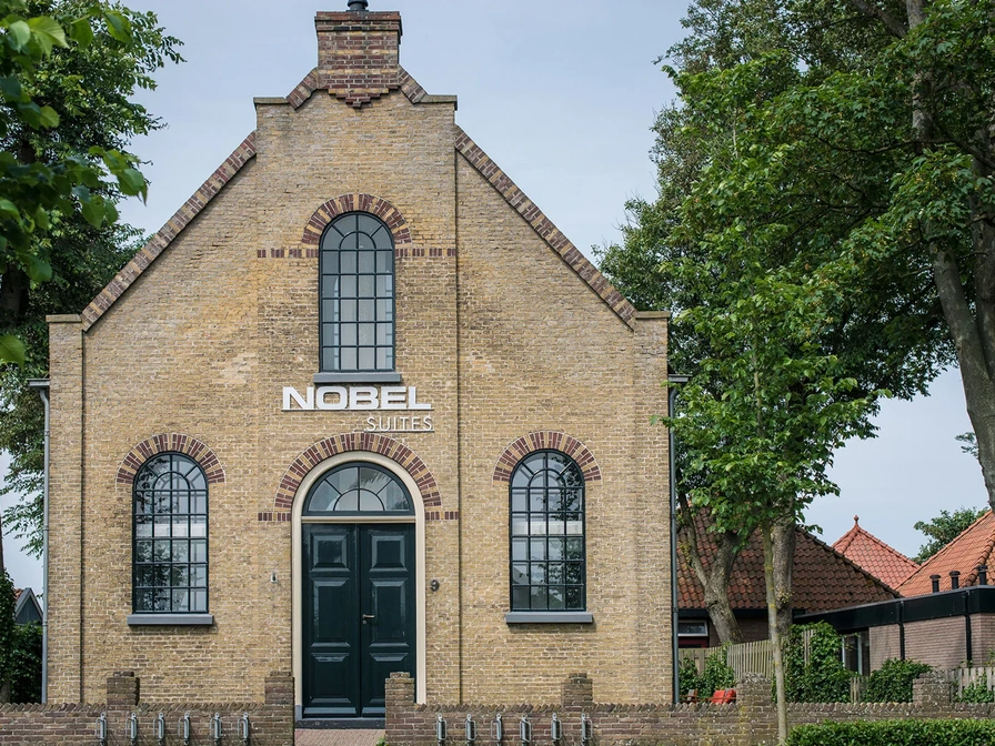 Het Nobel Hotel is een designhotel met de warme gastvrijheid van het familiebedrijf. Dé plek waar levensgenieters zich thuis voelen op Ameland. Het hotel in Ballum is een perfecte uitvalsbasis om Ameland te verkennen, want er is genoeg te doen! Nobel Hotel Ameland is modern en sfeervol ingericht en telt 19 kamers, een café en een restaurant. Zo is er de hele dag door een plek waar je bij ons verblijven. Neem plaats bij de gezellige haard die altijd brand voor een kop goede koffie. Of in het sfeervolle restaurant voor een heerlijke lunch of diner. Om 17:00 uur is het borreltijd in het café. Dat merk je vanzelf als je de bulderende lach van Barend en Wim vanachter de toog hoort. Want het hotel is strak en modern ingericht, maar koud is het er allerminst. De gastvrijheid van de familie voel je overal in het bedrijf. Zo voel je je al snel thuis. De heerlijke kamers van hotel Nobel Maak voor een overnachting bij Hotel Nobel je keuze uit één van de verschillende kamertypes. Je kunt kiezen voor de comfortkamer begane grond of comfortkamer 1e etage. Wil je meer luxe ga dan voor de comfortkamer plus waar je de beschikking hebt over een bubbelbad. In de loggia en loggia suite heb je naast een bubbelbad ook een loungebank en een apart zitje in je kamer. Kom je met een groter gezelschap (max. 12 personen) of wil je meer privacy en een sauna kies dan voor de kerksuites van Nobel. Alle 19 kamers zijn modern en stijlvol ingericht en voorzien van een 2-persoons Nilson boxspringbed met topmatras. De kamers zijn voorzien van een koelkastje, flatscreen tv, kluisje, ruime kledingkast, telefoon en je kunt er koffie en thee zetten (iLLy Y3 Iperespresso). Natuurlijk is er ook gratis WiFi op de kamers. In het hotel is geen lift aanwezig, de kamers op de 1e etage zijn bereikbaar via de trap.