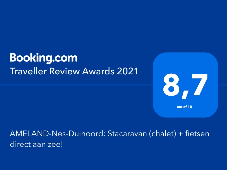 De perfecte locatie: direct achter de duinen op een steenworp afstand van het strand. Het gezellige dorpje Nes bevindt zich op loop/fietsafstand, net als het Amelander bos. De stacaravan bevindt zich op het rustige deel van camping Duinoord (Zoover: 8,9) met alle voorzieningen bijdehand. Vanuit de stacaravan loopt u in een paar minuten het strand op, of u pakt de fiets en kunt direct het befaamde duinpaadje nemen richting de vuurtoren of natuurreservaat Het Oerd.