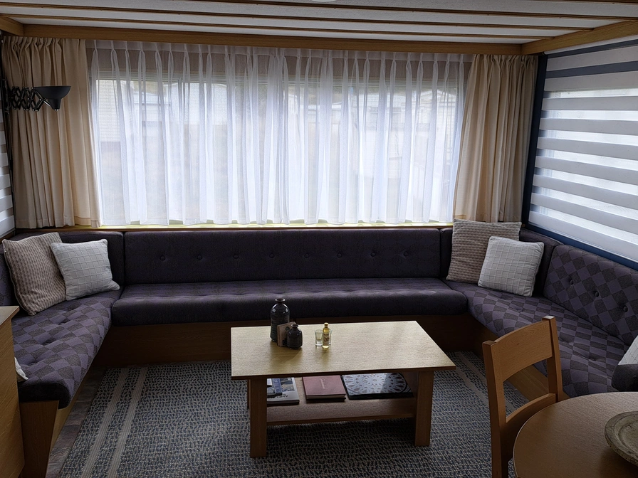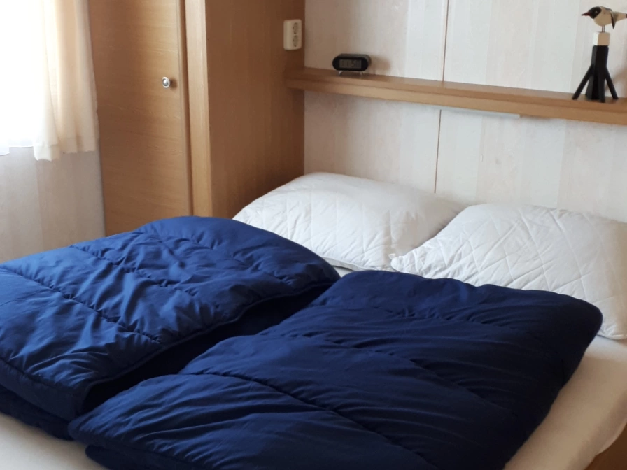 Het echte kampeergevoel combineren met comfort? Dat kan in deze zeer nette, compleet ingerichte stacaravan met gratis fietsen! - Woonkamer met ruime zithoek, losse eettafel met 4 stoelen en kinderstoel, smart-tv, verwarming etc. De woonkamer kan als extra slaapplaats gebruikt worden. Een tentje bijzetten kan ook, dit kost ongeveer 7 euro per nacht. - Open keuken voorzien van 4-pits gasstel met afzuigkap, koelkast met vriesvak, koffiezetapparaat, Nespresso, waterkoker, servies en kookgerei. - Slaapkamer met tweepersoonsbed (matrasmaat 2 x 70 x 200), 2 eenpersoons dekbedden en kussens. Slaapkamer met stapelbed (2 x 70 x 190), dekbedden en kussens. - Babybedje is aanwezig, maar past niet naast de bedden in de slaapkamers. - Badkamer voorzien van douchecabine met thermostaatkraan, vaste wastafel en toilet. - Terras met meubilair, parasol en kussens. In deze nette, gezellige stacaravan zult u zich direct thuis voelen. Fijne vakantie gewenst!
