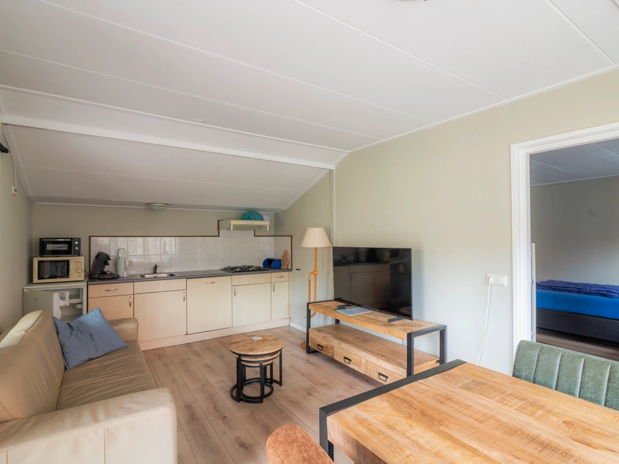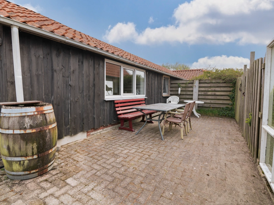 "Om 'e West" is een vakantiehuisje voor 2 personen. Dit appartement heeft een woonkamer/keuken; de slaapkamer is op de begane grond; er staan 2 eenpersoonsbedden en een stapelbed. Er is een aparte ruimte met douche, toilet en wastafel en het geheel wordt centraal verwarmd. In "Om 'e West" mag niet gerookt worden. Inrichting: aparte bedden met dekbedden (het bedlinnen is geschikt voor allergische personen), bankstel, eethoek, TV (met kabeltelevisie), DVD-speler, volledig ingerichte keuken met een gootsteen, gasstel, koelkast, vaatwasmachine, waterkoker, koffiezetapparaat, senseo, afzuigkap, magnetron, servies en bestek. Buiten kunt u heerlijk op uw eigen terras in het zonnetje zitten