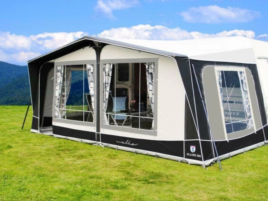Comfortabele caravan met voortent, op 250 meter van zee