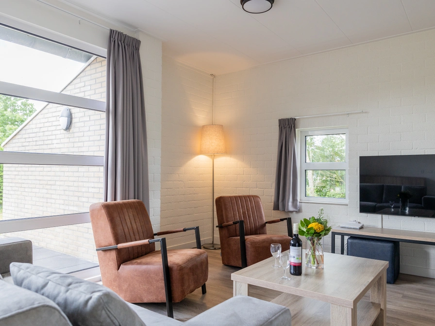 Ontdek onze vrijstaande Riant Eco-bungalow, een oase van duurzaamheid en comfort voor 4 personen. Deze accommodatie is een toonbeeld van milieubewust leven, met zonnepanelen, zonnecollectoren voor warm water en een warmtepomp die zorgen voor een minimale ecologische voetafdruk. Geniet van de innovatieve upfall-shower, die tot 90% waterbesparing realiseert. Binnen wacht een warm welkom in de woonkamer met een gezellige zithoek. De eethoek grenst aan een open keuken, uitgerust met een inductiekookplaat, vaatwasser en combi-magnetron. Rust vind je in de twee slaapkamers op de begane grond, elk met 2 éénpersoonsbedden. Verwen jezelf in de royale badkamer met dubbele wastafel, upfall-shower, bad en zelfs een infrarood-sauna. Praktische voorzieningen zoals een wasmachine en wasdroger maken je verblijf extra comfortabel. Buiten nodigt het terras met een tuinset voor 4 personen en een parasol uit tot ontspanning in de natuur. Voor gezinnen zijn een kinderbed en kinderstoel standaard aanwezig. Huisdieren zijn welkom, tot maximaal twee per bungalow. Ervaar een vakantie waarbij comfort en duurzaamheid hand in hand gaan in onze Riant ECO bungalow.