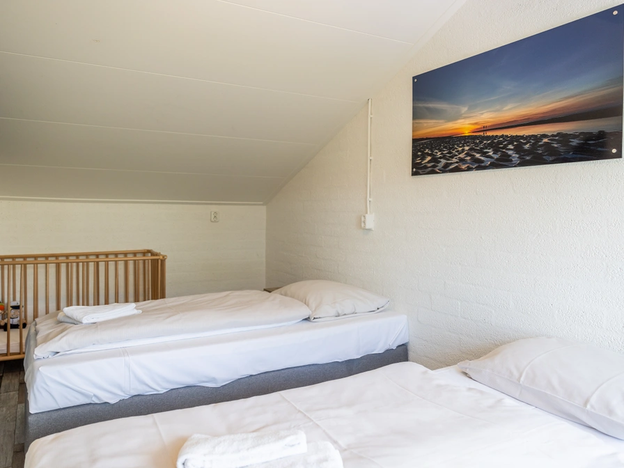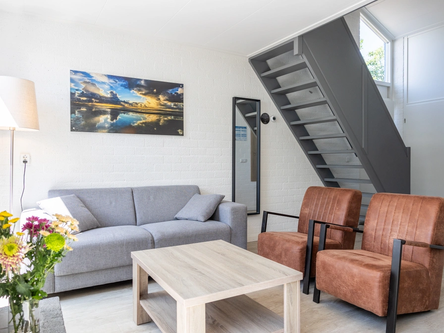 Deze geschakelde vakantiewoning is geschikt voor 4 personen. De woonkamer beschikt over een comfortabele zithoek en een open keuken met vaatwasser. Er zijn twee slaapkamers: één op de begane grond en één op de bovenverdieping. Beide slaapkamers hebben twee éénpersoonsbedden. De badkamer bevindt zich op de begane grond en is uitgerust met een wastafel, een inloopdouche en een toilet. Standaard is er in de bungalow een kinderbed en een kinderstoel aanwezig. Huisdieren zijn in deze accommodatie niet toegestaan. De bungalows liggen dicht bij de speeltuin en het centrumgebouw. Parkeren kan op de nabijgelegen parkeerplaats.