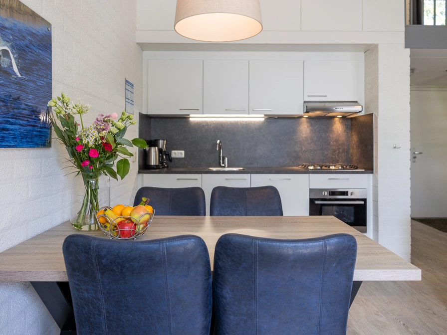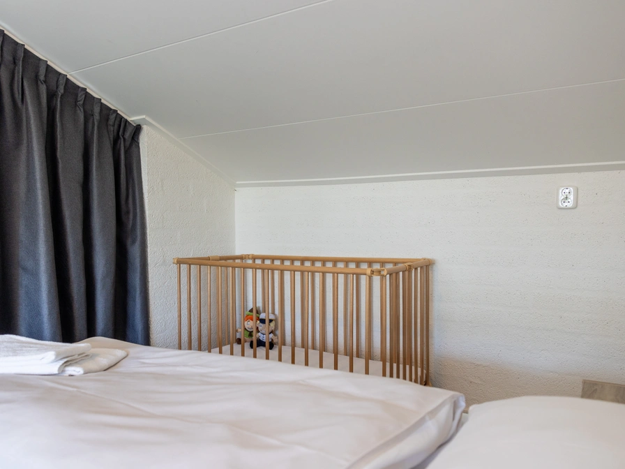 Deze geschakelde vakantiewoning is geschikt voor 4 personen. De woonkamer beschikt over een comfortabele zithoek en een open keuken met vaatwasser. Er zijn twee slaapkamers: één op de begane grond en één op de bovenverdieping. Beide slaapkamers hebben twee éénpersoonsbedden. De ruime badkamer bevindt zich op de begane grond en is uitgerust met twee wastafels, een aparte douche en een bad. Er is een separaat toilet. Standaard is er in de bungalow een kinderbed en een kinderstoel aanwezig. Huisdieren zijn in deze accommodatie niet toegestaan. De bungalows liggen dicht bij de speeltuin en het centrumgebouw. Parkeren kan op de nabijgelegen parkeerplaats.