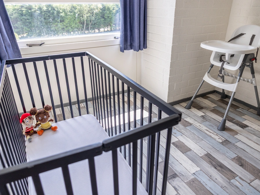 Deze geschakelde vakantiewoning is geschikt voor 6 personen. De woonkamer beschikt over een comfortabele zithoek en een open keuken met vaatwasser. Er zijn drie slaapkamers: twee op de begane grond en één op de eerste verdieping. Alle slaapkamers hebben twee eenpersoonsbedden. De badkamer is uitgerust met een wastafel, een bubbelbad met douche in het bad en een toilet. Standaard is er in de bungalow een kinderbed en een kinderstoel aanwezig. Huisdieren zijn in deze accommodatie niet toegestaan. De bungalows liggen dicht bij de speeltuin en het centrumgebouw. Parkeren kan op de nabijgelegen parkeerplaats.