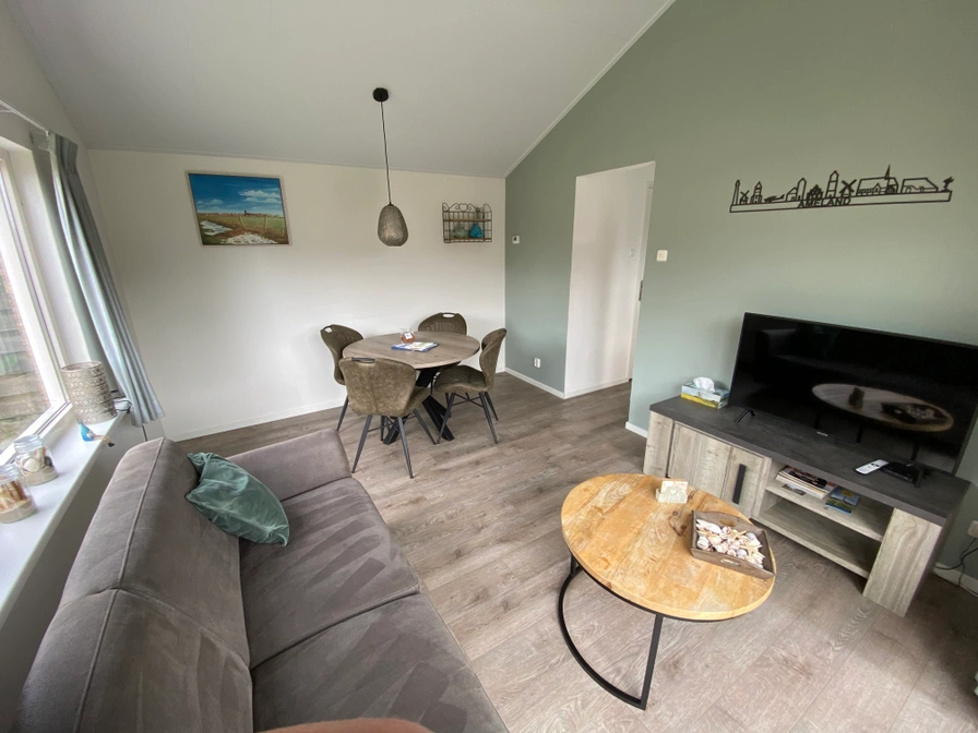 Entree in keuken met vaatwasser, combimagnetron, gaskookplaat en koelkast met vriesvak. Slaapkamer met 2-persoonsboxspring (twee éénpersoonsdekbedden). Badkamer grenzend aan slaapkamer met inloopdouche (regendouche) en toilet. Woonkamer met eethoek en zithoek. Netflix aanwezig. Via de schuifpui kunt u naar het terras.