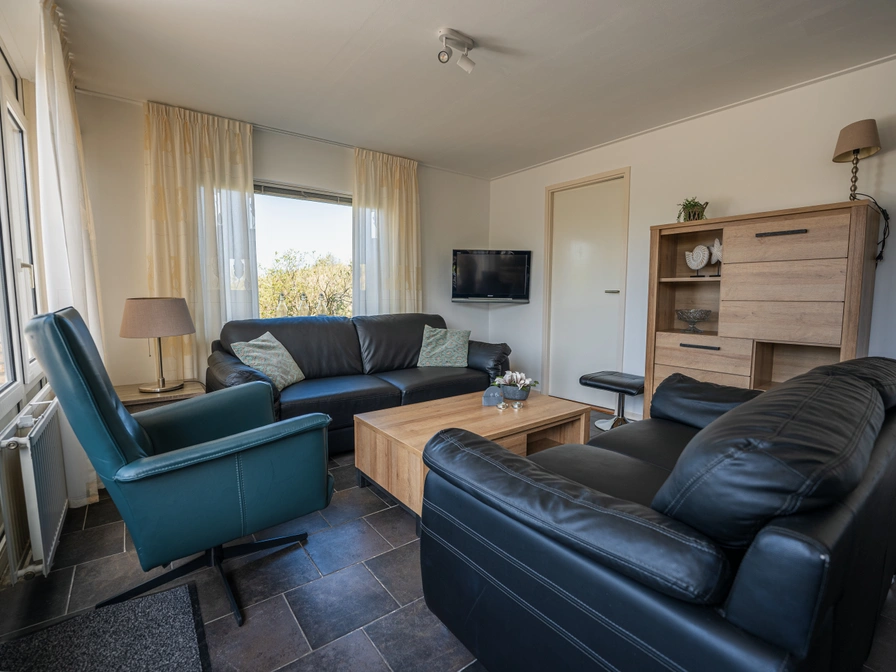 De bungalow is rustig gelegen tegen de duinen, met 2 terrassen waarvan één met loungehoek op het zuiden. De bungalow is uitgerust met 3 ruime slaapkamers, alle met eigen wastafel en zithoek. De ruime zithoek beschikt over tv, dvd-speler en stereo. De luxe open keuken is voorzien van combimagnetron en afwasmachine. De ouderslaapkamer is voorzien van een extra eigen tv. U kunt in de bungalow gebruik maken van gratis wifi. Huisdieren zijn in overleg toegestaan. Er is een eigen parkeerplaats aanwezig. De tuin is omheind. Op het park vindt u o.a. een supermarkt, overdekt zwembad, fitness ruimte, bowling en een restaurant, snackbar.