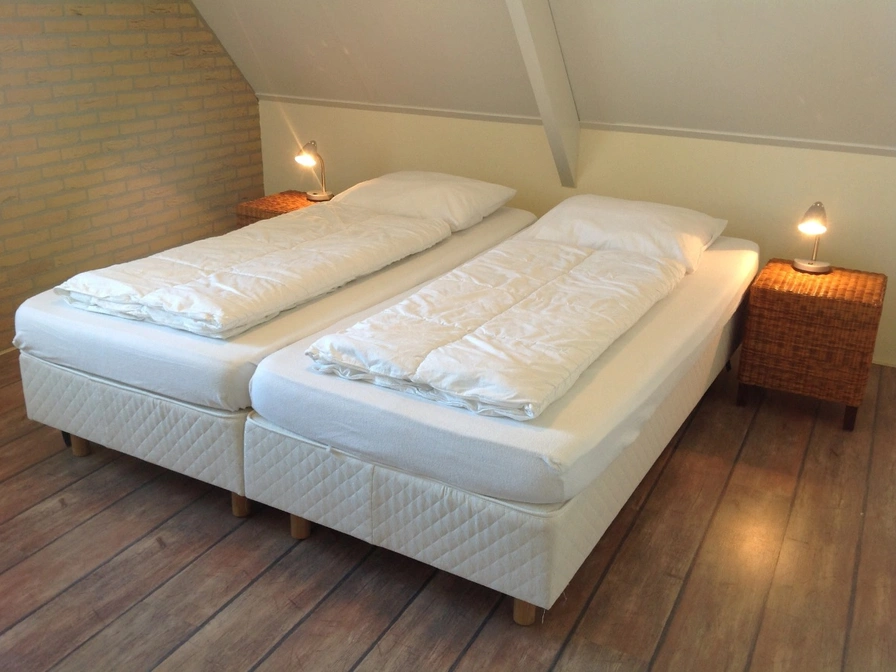 'Tieuwen' is deel van een twee-onder-een-kaphuis met een rieten dak. De bungalow heeft een Finse sauna met extra douche. Dit 6-persoonshuis heeft een woonkamer van ca. 50 m² met een open keuken. Vanuit de woonkamer kunt u het terras bereiken. Er zijn drie slaapkamers op de bovenverdieping. Eén slaapkamer is voorzien van een tweepersoonsbed, de andere twee slaapkamers hebben elk twee eenpersoonsbedden. Via de hal bereikt u de badkamer met bad douche en het separate toilet. Tevens is er een tweede toilet aanwezig. De keuken is voorzien van een magnetron, koelkast en een vaatwasmachine. In de woonkamer is een tv, DVD, radio en een Cd-speler. Tieuwen beschikt over een eigen parkeerplaats. Extra: kinderbed, kinderstoel, wasmachine, wasdroger