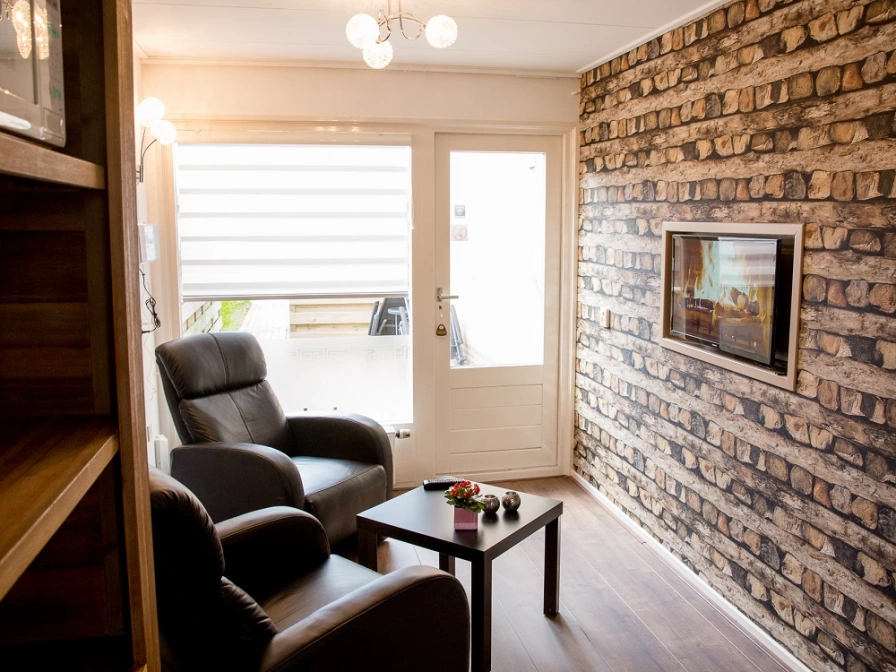 Aan de rand van Hollum vindt u dit knusse appartement voor 2 personen. Compleet ingericht en van alle gemakken voorzien. Het heeft een gezellige living met radio, cd/dvd-speler, flatscreen-tv en wifi. De keuken is voorzien van een vaatwasser, koelkast, Senseo koffieapparaat, grill, magnetron, waterkoker en een broodrooster. In de aparte slaapkamer staan 2 opgemaakte boxsprings voor u klaar, eventueel aan elkaar te schuiven. Grenzend aan de slaapkamer is de badkamer met toilet, wastafel en douche. Ook heeft u beschikking over een föhn. Het appartement heeft een terras met twee tuinstoelen met kussens.