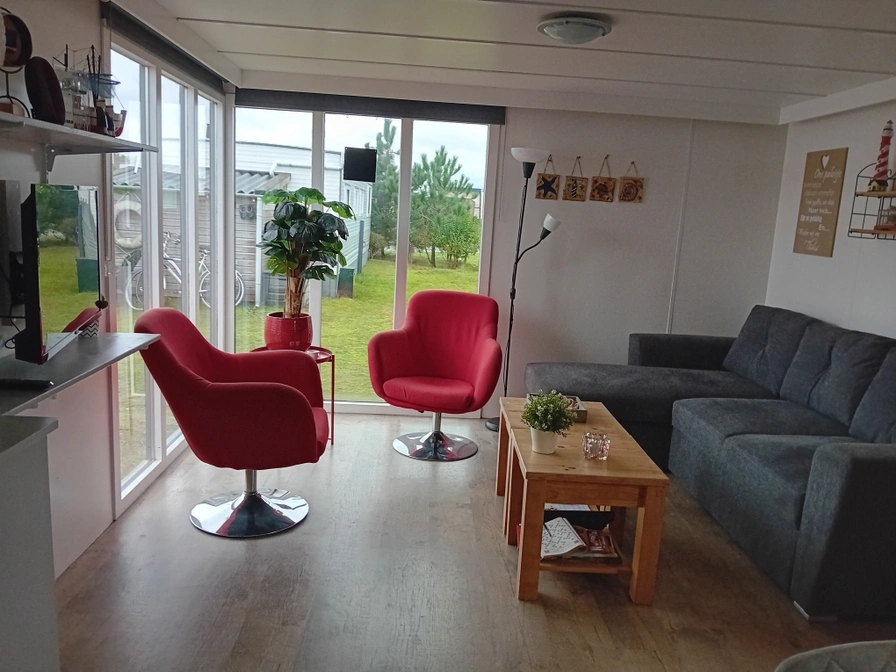 Wij hebben een mooie chalet op het prachtige Ameland waar wij altijd vol op van genieten. We willen deze dan ook graag verhuren zodat ook andere mensen hier een mooi verblijf kunnen hebben. De chalet is grotendeels vernieuwd, heeft een mooie inrichting en moderne frisse kleuren. De badkamer heeft een toilet, wastafel en een vrij ruime douche. Op het terras bevindt zich een tuinset met 6 stoelen en een parasol. Slaapkamers: - 1 slaapkamer met een tweepersoonsbed (matras 140 x 200) en een tweepersoonsdekbed (200 x 200 cm). - 1 slaapkamer een stapelbed en een éénpersoonsbed (80 x 200), deze bedden zijn voorzien van éénpersoonsdekbedden . - Badkamer met douche, wc en wastafel. Keuken: - Koelkast met vriesvak - Gasfornuis - Afzuigkap - Vaatwasser Woongedeelte: - tv en radio - gratis internet van de camping - een kachel op aardgas Buiten: - een tuinset met 6 stoelen en parasol - naast de chalet staat een schuurtje met een droogmolen